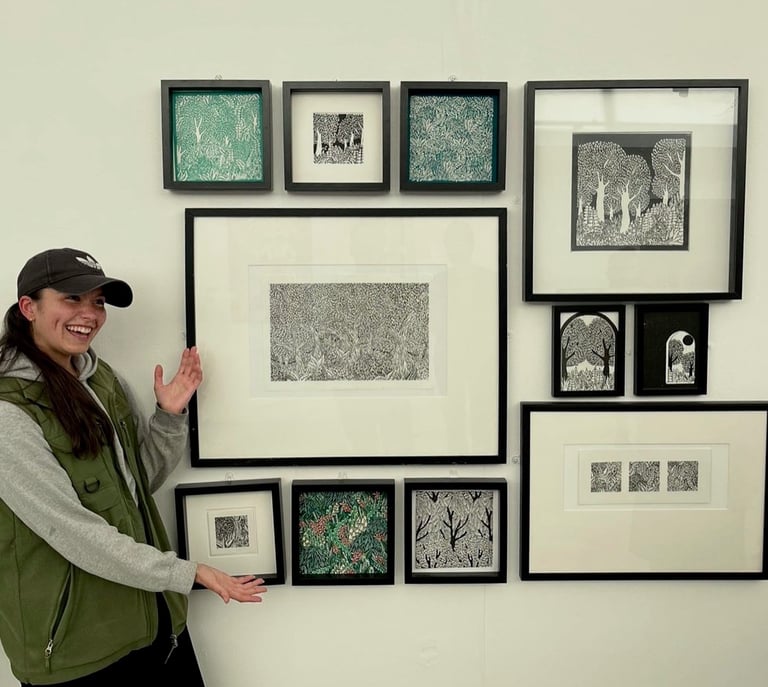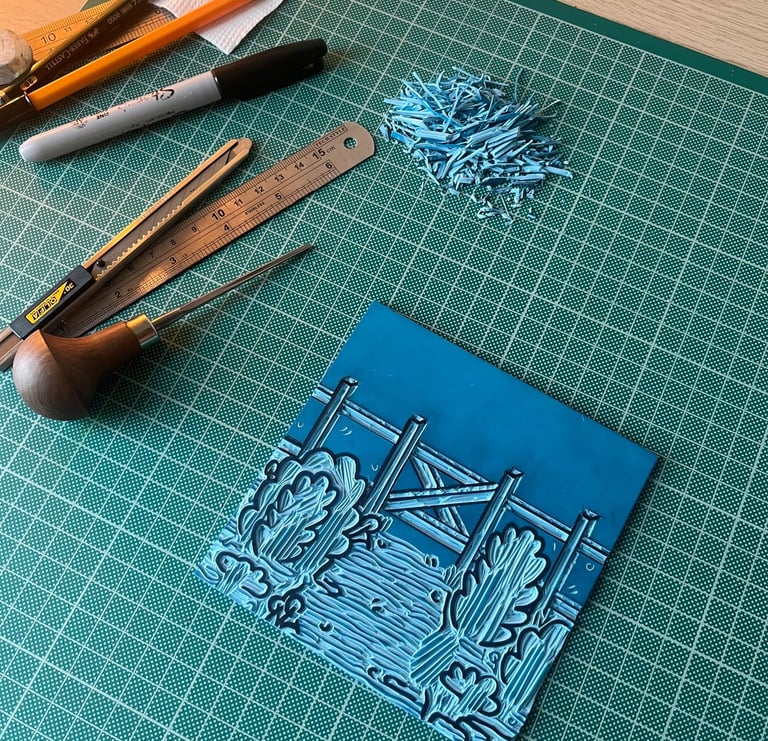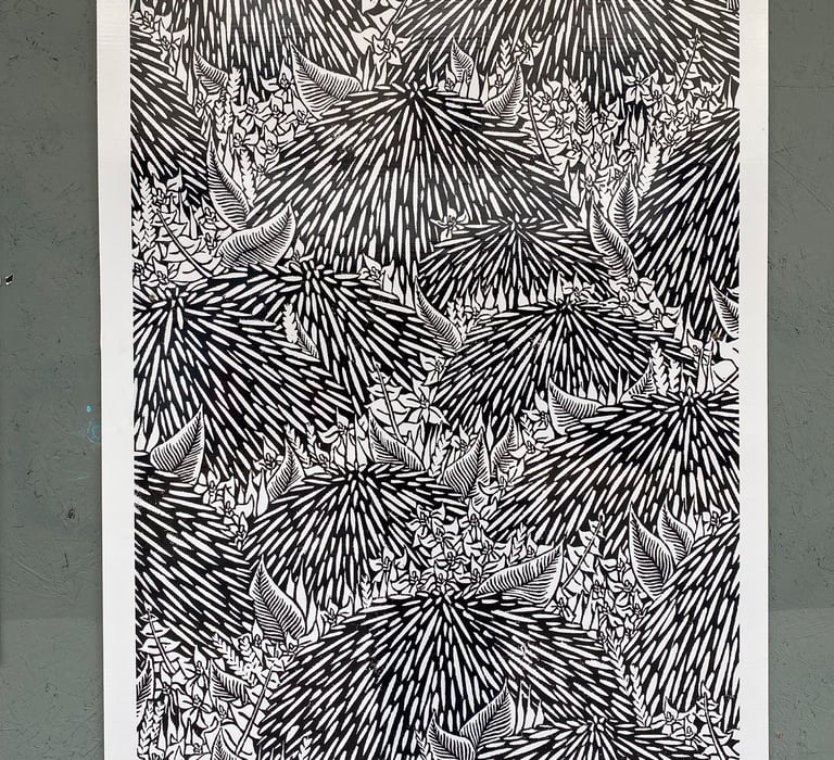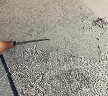 I discovered lino printing in 2021 while studying for a Foundation Diploma in Art & Design at Blackburn College and instantly fell in love with the process. I’m drawn to its hands-on, tactile nature — especially the carving stage — where the image slowly emerges through time and patience. The unpredictability of the final print is what makes the process so exciting and rewarding.