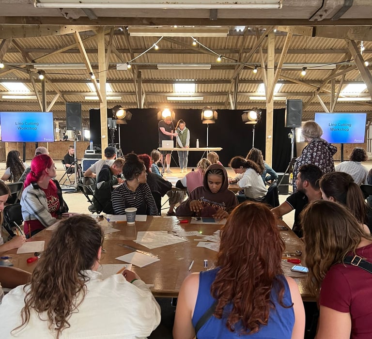 Photos: Lino printing workshop at a festival (Focus.) - July 2022 & 2023
